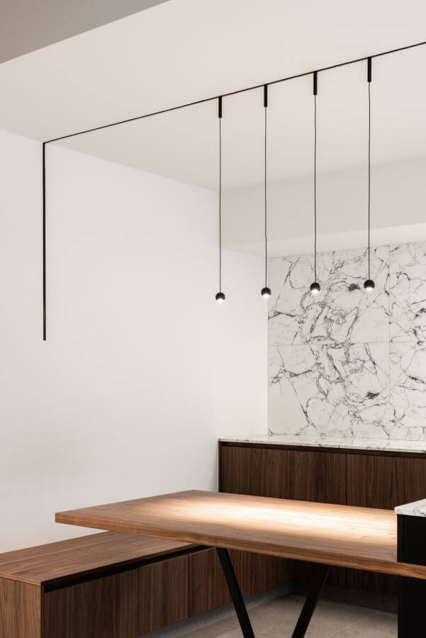 Exprime une apparence et un style raffinés et minimalistes sur les murs ou les plafonds bas, sur les plafonds hauts dans sa variante suspendue ou ajoute une accentuation stylée au système de rails Pista. Ce petit spot fera grande impression.