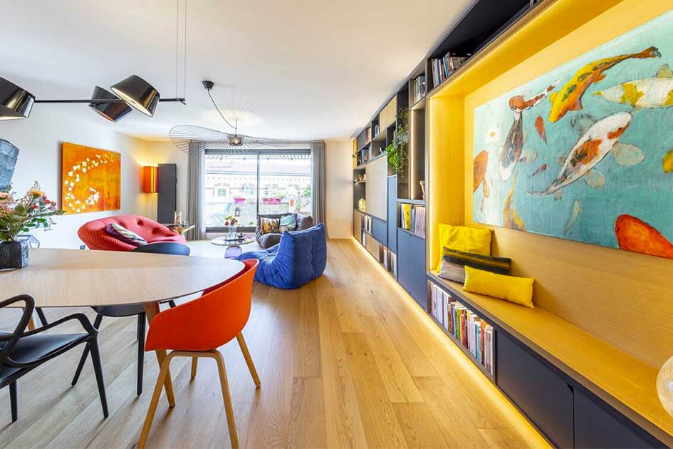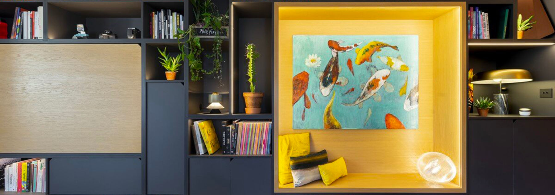 Ce projet mené par Prolum DRL avait pour objectif de structurer et accentuer les lignes de la bibliothèque dessinée sur-mesure par Clémentine Mailhac, artiste et architecte d’intérieur.
