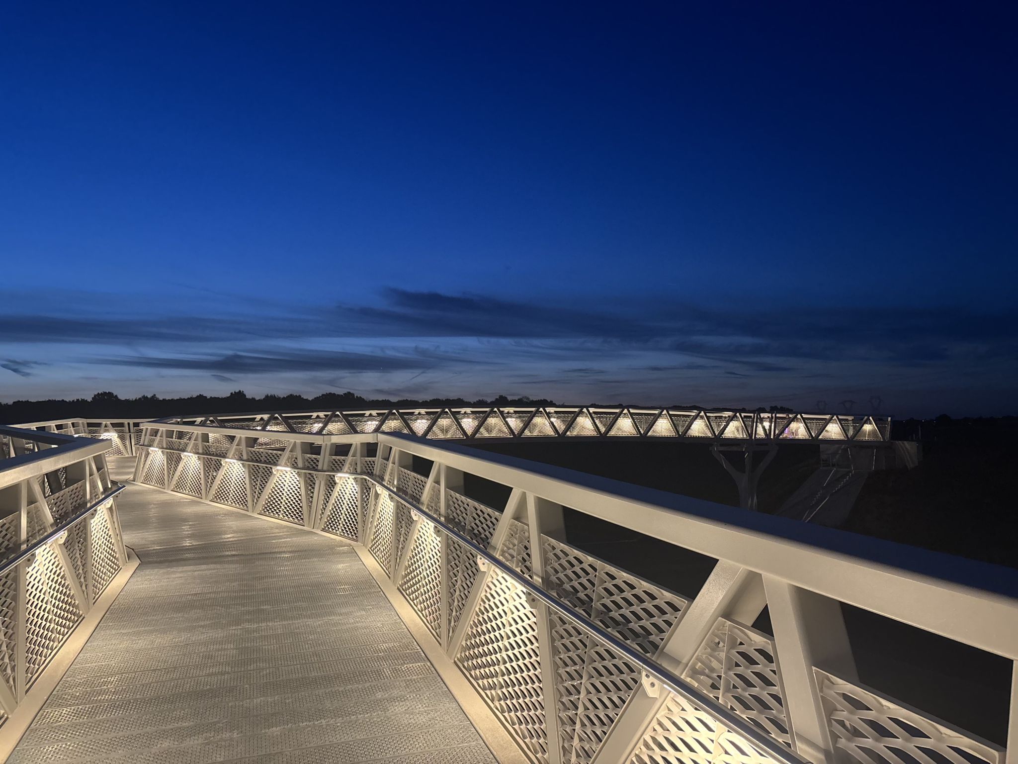 Nous avons assuré la fourniture d’un éclairage adapté aux contraintes d’un tel ouvrage extérieur. En partenariat avec Veryelec Very, installateur du projet, ce sont 65 luminaires tubulaires ACTiLED Lighting qui ont été déployés. Fabriqués en France, ces luminaires se distinguent par leur robustesse mécanique, leur étanchéité et leur haute efficacité lumineuse, garantissant un éclairage homogène, durable et économe en énergie.