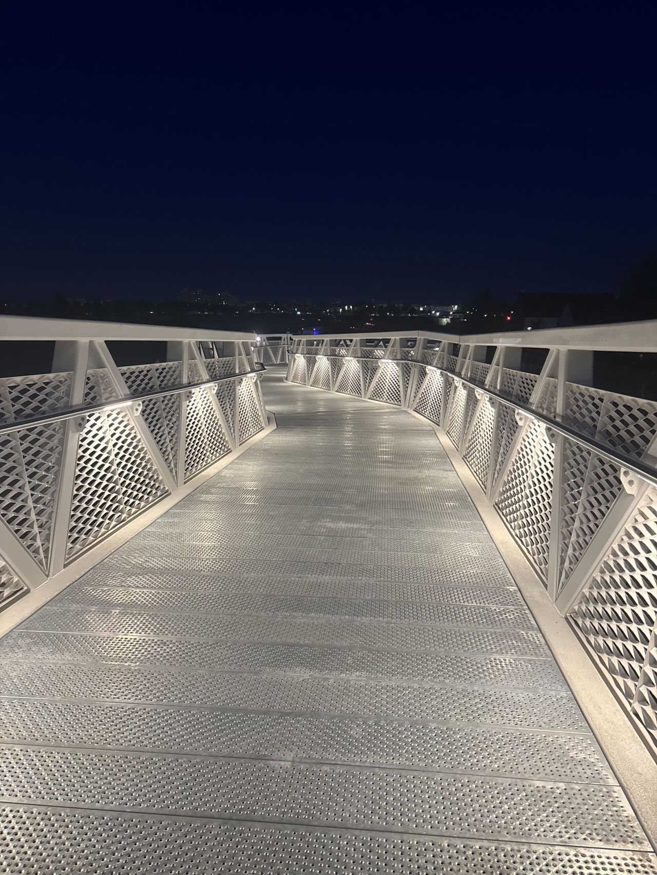 Une nouvelle passerelle piétonne et cycliste bien éclairée à Melun.