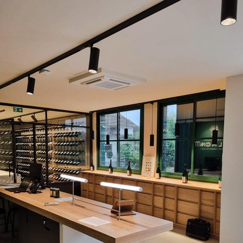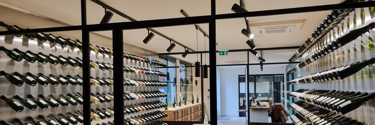 Le salon de réception met l’accent sur la mise en lumière des bouteilles :